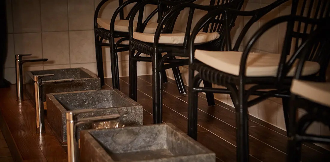 För en ännu mer njutningsfull upplevelse vid fotbadet erbjuder vi ett specialdesignat behandlingsset som du kan köpa direkt i receptionen. Välkommen till en värld av avkoppling och välmående!